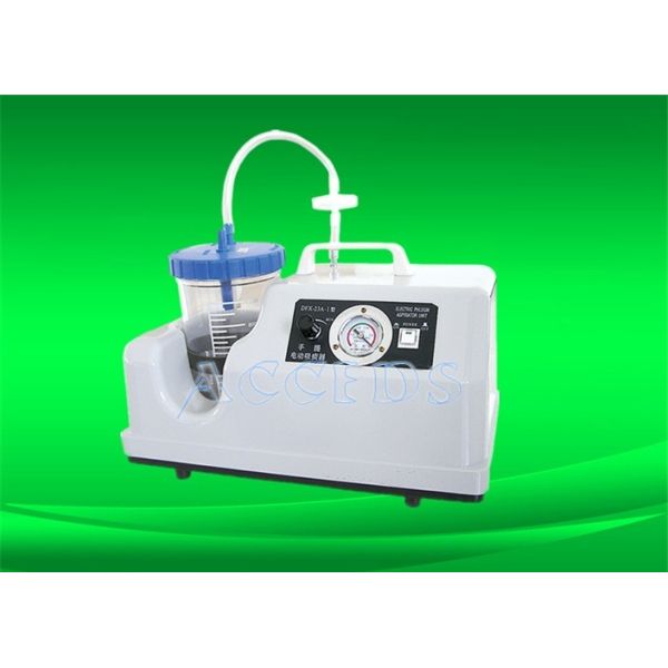 DFX-23A·I portable electrical sputum suction device can be used for suctioning sputum and other thick secretions in hospitals, and may also be used for fist aid in the household. The machine adopts oil-free lubricating pump, avoiding the pollution of oil mist. The pump requires no daily maintenance and servicing. The overflow protection device in the machine prevents liquids from flowing into the pump. The machine is characterized with small dimensions, light weight and high mobility. (Note: 23A·I adopts full plastics shell.)