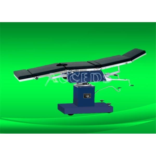 Intended for surgical operations on head, neck, pleuroperitoneal cavity, perineum, limbs, etc. in hospitals. Oil pump provides hydraulic elevation, imported hermetic ring; operating table controlled on the two sides to achieve the required position.